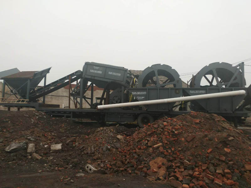 合格的細料排入兩臺輪式洗沙機內進行清洗,清洗后的成品料由成品料輸送機輸送至成品料區域。