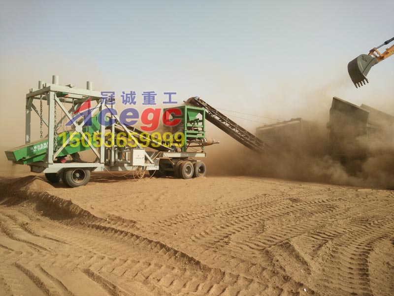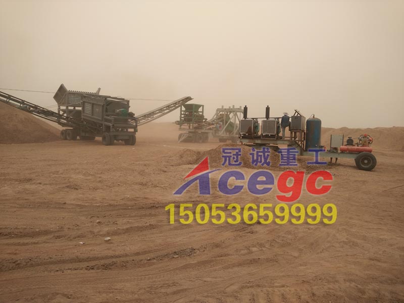 冠誠重工新型旱地選金設備也叫干選風選金礦設備,適用于干旱,缺水,沙漠等風力資源豐富的地區(qū),該款為移動車載式沙金機械,移動方便,適合復雜地形使用。