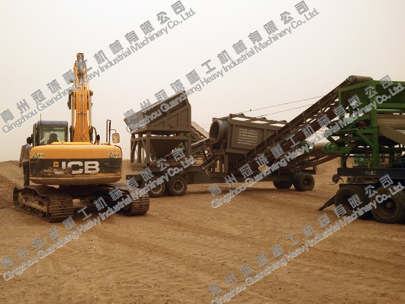 底盤框架主要由30#工字鋼組成,含12條900#輪胎。振動料倉篩條使用工鋼縱向間隔8CM布置,料倉使用5mm厚鋼板焊接。滾筒篩凈篩孔長度3米,內直徑1.2米,外直徑1.5米,含污泥絞洗裝置,主框架使用15#方管焊接,料倉使用5mm鋼板焊接。