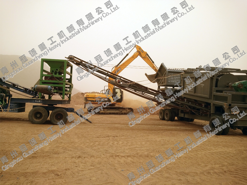 移動式淘金設備-每小時200噸處理量多功能移動淘金車流程概述: