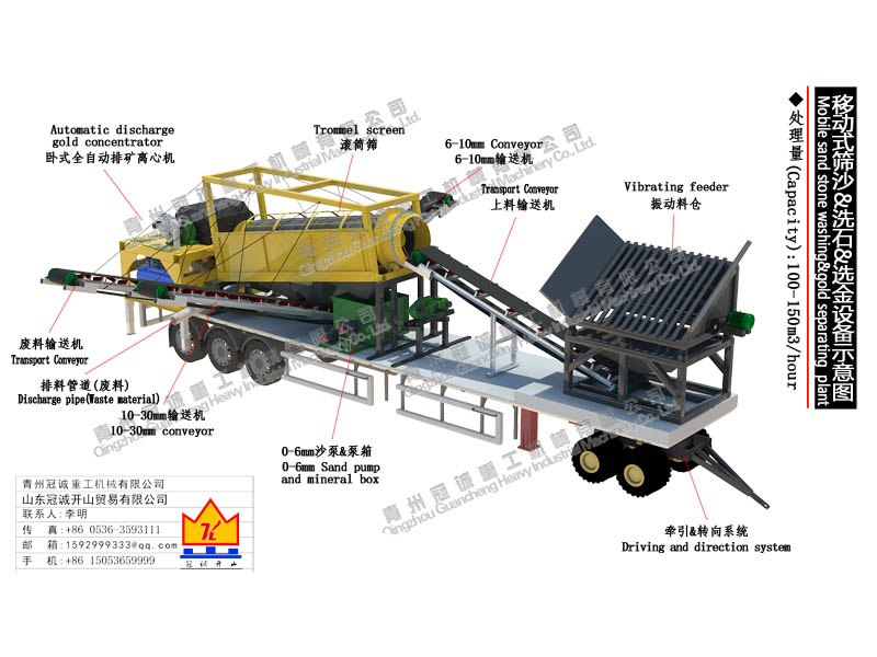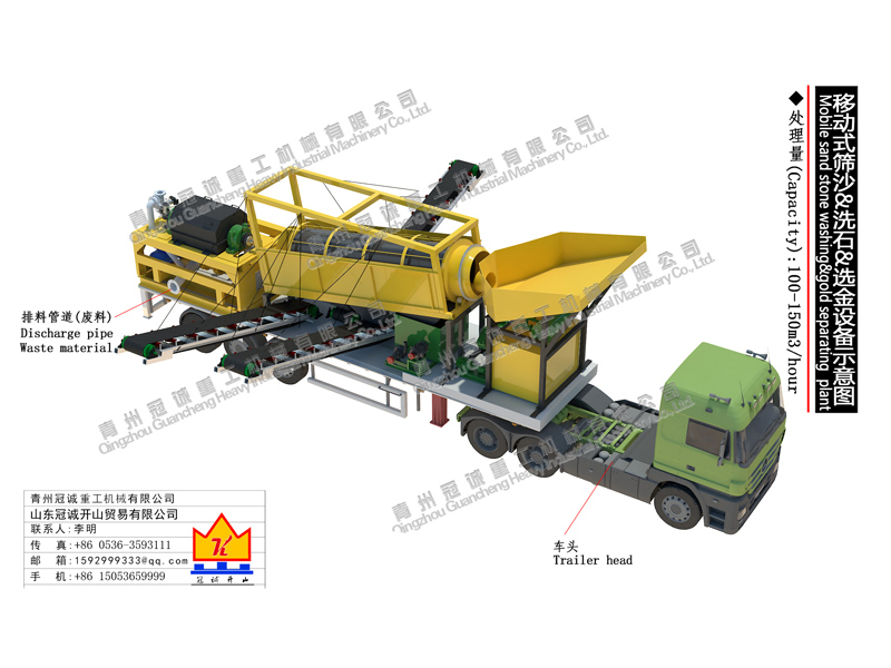 移動式篩沙水洗選金設(shè)備移動方便,操作簡單,篩沙、水洗、選金一次完成,加載冠誠重工生產(chǎn)的臥式全自動排礦離心機精選,精選后的精料會由精料管道自動排出;廢料由廢料管道自動排出。